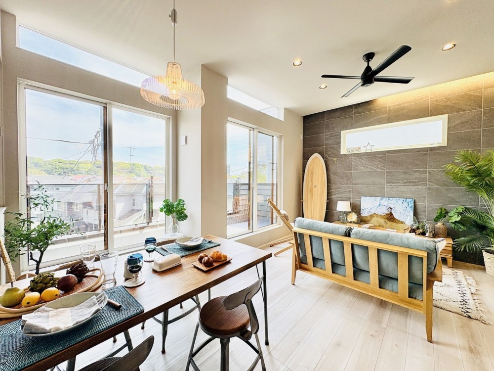 約12.5帖のルーフバルコニーと開放感のある天井高約2.9mのLD!